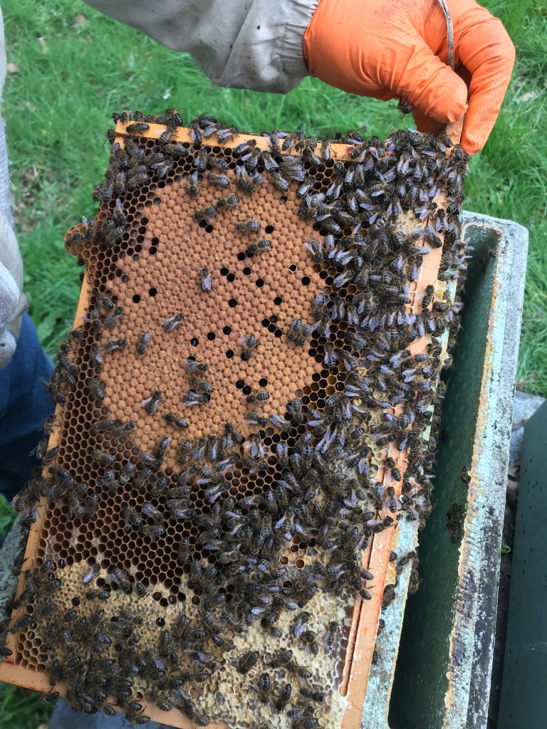 Voyez la photo d’un cadre de couvain, à la fin du moi de Mars!