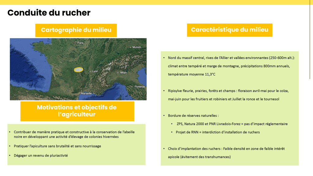 Le conservatoire d’abeilles noires en Combrailles est le fruit d’un immense travail de conservation, grâce à l’implication de ses membres. Les reines d’abeilles noires y trouvent des mâles et pourront devenir des souches pour maintenir le cheptel.