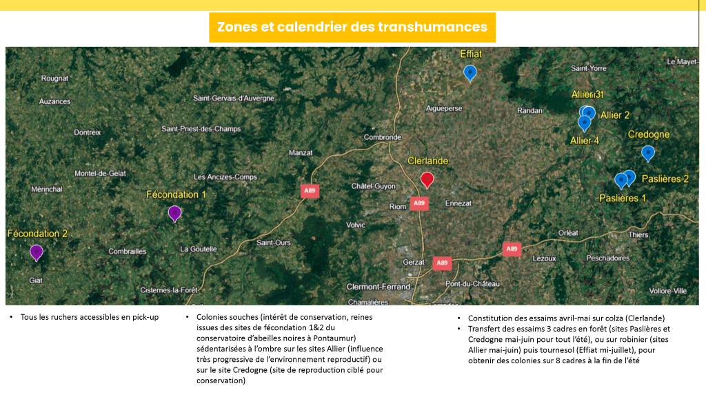 Les colonies sont réparties sur différents sites, selon leur lignée, afin de maintenir la diversité génétique au sein du cheptel.