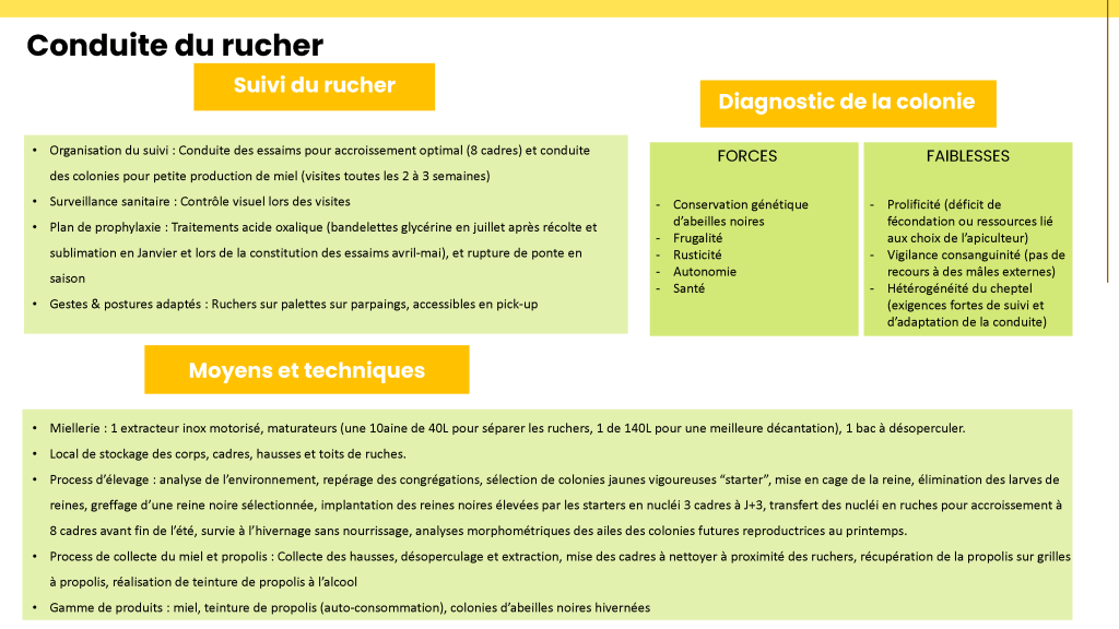 Nous souhaitons élever et mettre à disposition des colonies d’abeilles noires adaptées aux conditions environnementales locales. Notre action vise à constituer un cheptel sédentaire sans sélection artificielle, afin de produire des colonies pour les apiculteurs des alentours.
