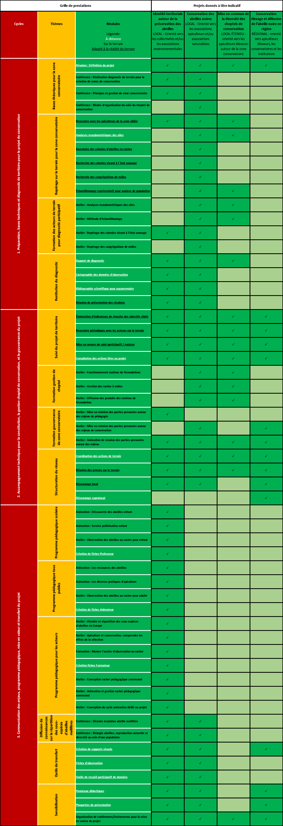 Vous pouvez trouver des compléments pour votre projet avec chacune des prestations contenues dans le tableau accessible ci-dessous